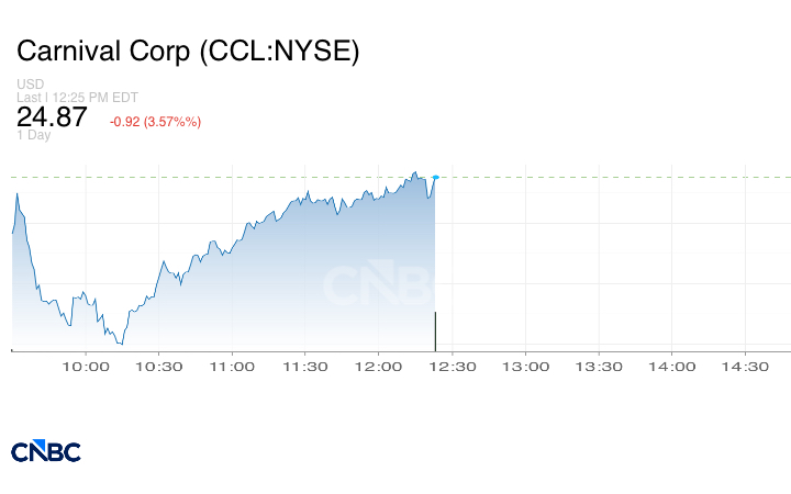 انخفض سهم كارنيفال Carnival بأكثر من 3% خلال جلسة تداول يوم الاثنين، مسجلاً أسوأ أداء في مؤشر ستاندرد آند بورز 500. ويتجه السهم نحو تسجيل أكبر انخفاض يومي له منذ نوفمبر.
