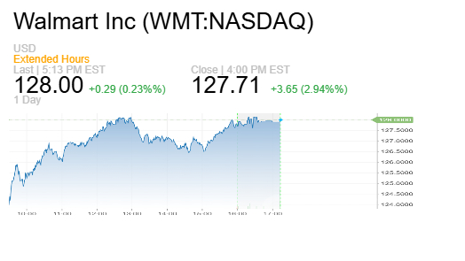 كان سهم وولمارت يتداول عند 127.10 دولار في جلسة الثلاثاء، وهو سعر يعكس عدة تقسيمات للأسهم، كان آخرها تقسيم 3 مقابل 1 في فبراير 2024.