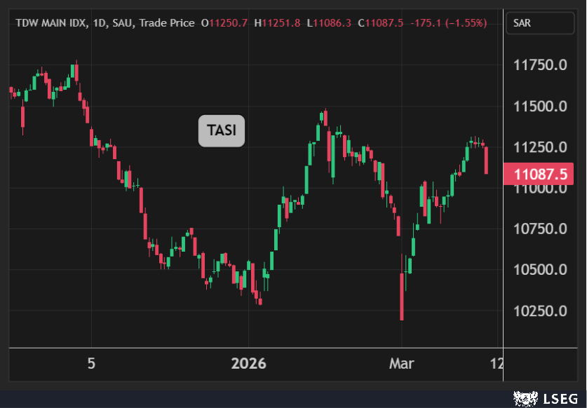 مؤشر تاسي يسجل أكبر خسارة يومية في نحو شهر