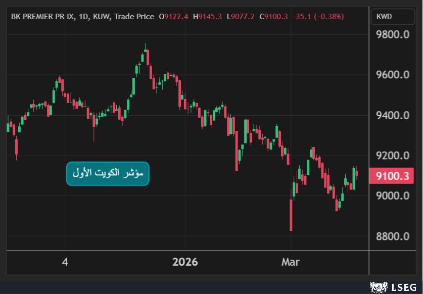 تراجع مؤشر الكويت الأول بنسبة 0.4% في يوم الثلاثاء ليغلق عند مستويات 9100 نقطة بضغط من انخفاض سهمي بيتك وزين بنسبة 0.1% و0.9% على التوالي.